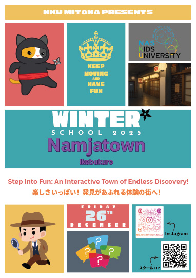 今年のWinter Schoolは12月26日(金)のみの開催となります。三鷹校はナンジャタウンへ行きます。